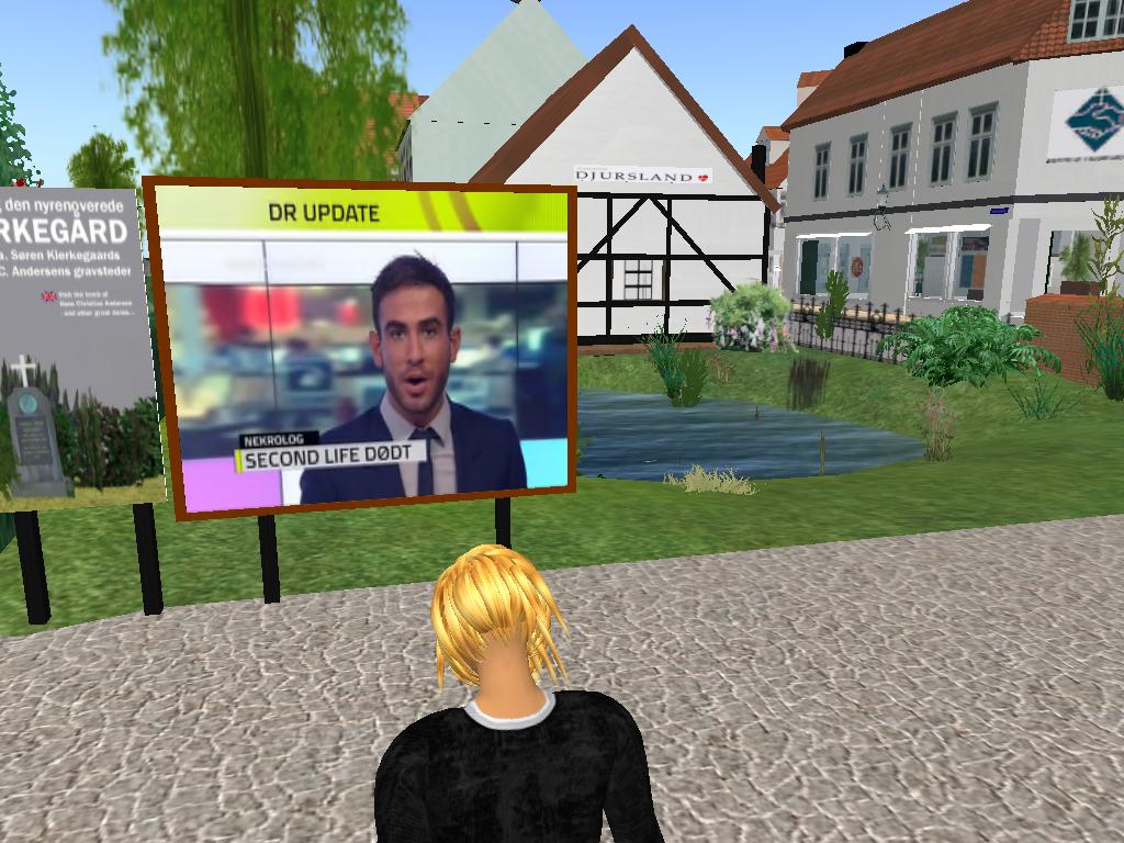 Secondly, the title actually refers to SL. On Friday July 11th Danish National Media pronounced the death of Second Life in both an article and a TV-clip.