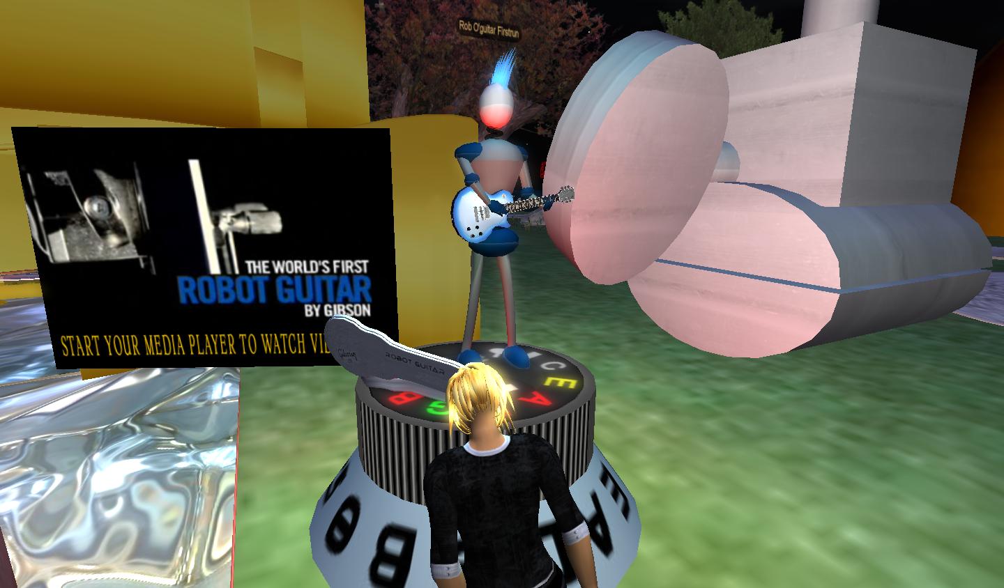 In tribute to the legendary Gibson Les Paul guitar and to Les Paul himself, the Gibson Island is in the shape of the famous guitar body and rises up from the ocean in Second Life. The “island” features humbucker mountains, full theatres, mini-theatres, and other areas resembling pick ups and other aspects of a Gibson guitar.