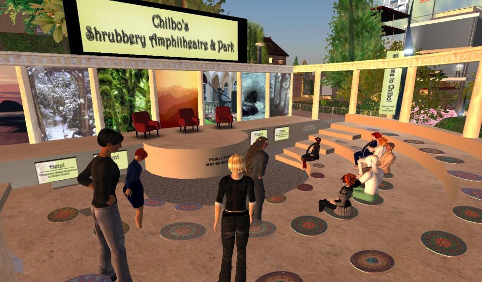 After this half hour of discussion we teleported to The Connectivism Village to have a look at the different facilities Fleep and Graham Mills have designed for the course in-world.