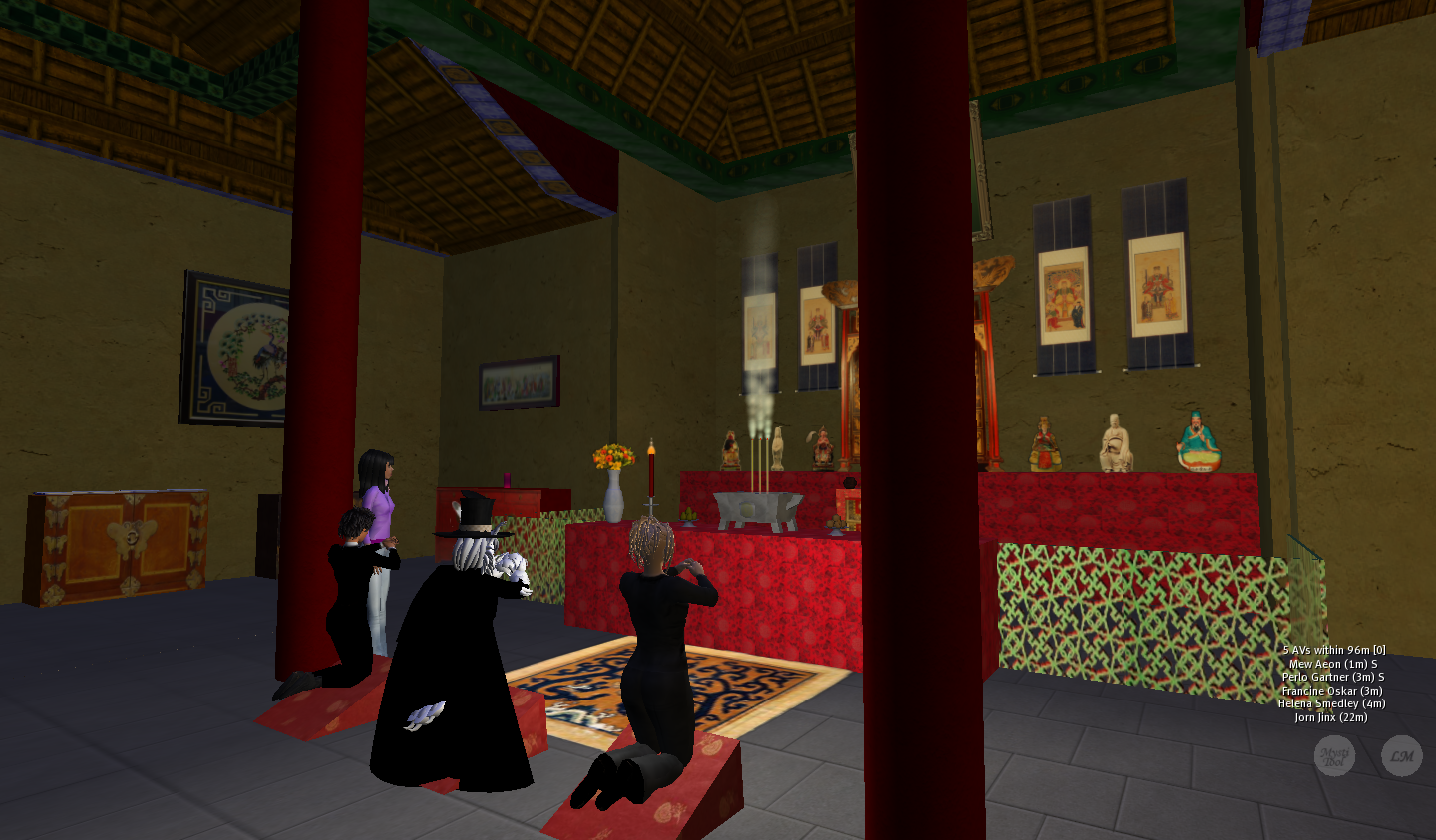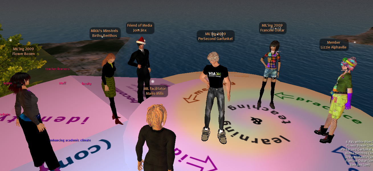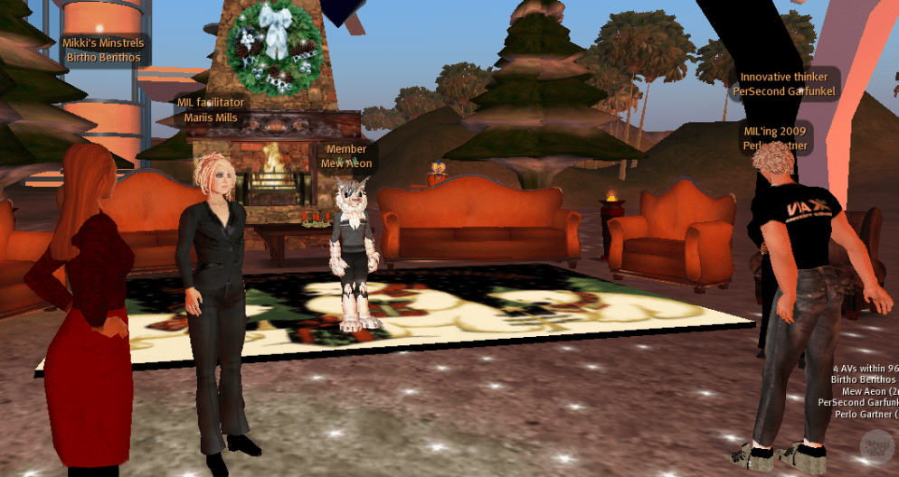 The third student analysis of SL was conducted by PerSecond and he had asked us to meet him at our regular meeting place in front of the fireplace on MIL’s island, but was otherwise very secretive about his presentation. As we were waiting for the other students to turn up we small talked about our avatars’ clothes – a topic that seems quite popular for both gender in-world. While it doesn’t make much sense to discuss the in-world weather, I do think the interest in the avatar appearance stems from a deeper need to figure out and find your way with the new identity.