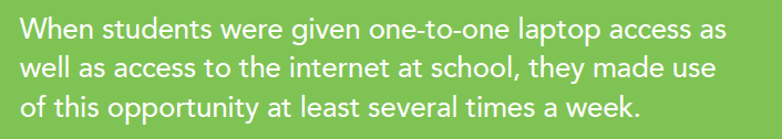 The good news is that research shows that if at-risk-students gain ready access to appropriate technology used in thoughtful ways, they can make substantial gains in learning and technological readiness (Darling-Hammond; Zielezinski & Goldman, 2014, s. 4).