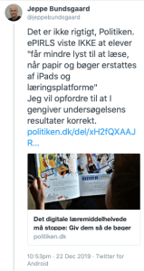 *) Se evt. folkeskolelærer, Anne Hammers indlæg ‘Det er ikke iPadens skyld’.