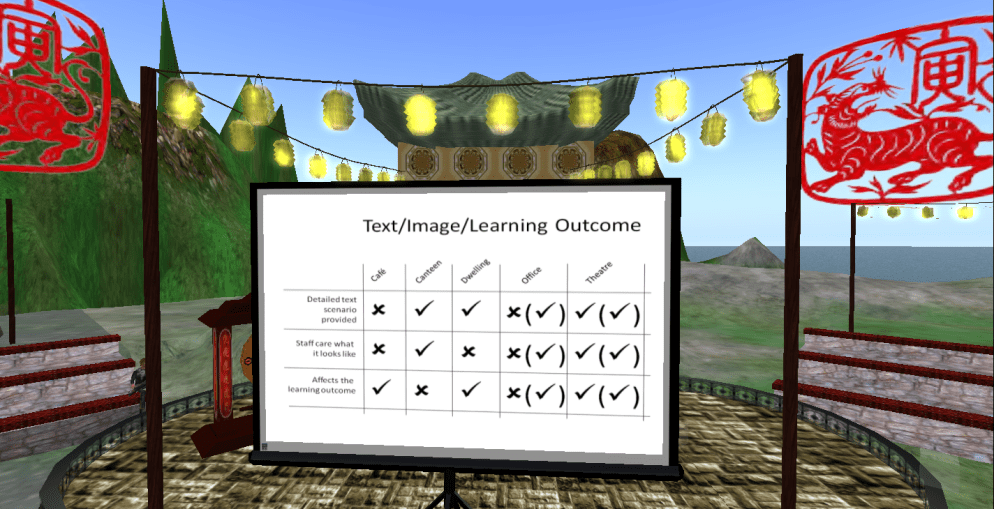 The study proved some highly interesting results with participant improvement in clinical skills, but what also was fascinating, was the participants’ rating of the experience in SL as they all agreed that the experience was superior to other online methods, and the majority felt that the SL method was as good as, if not better than, f2f methods. Having read the above mentioned article, I’m quite sure that the success stems from a very deliberate instructional design strategy, which addressed the participants’ needs not only as learners of a particular subject matter, but also as users of SL. Even though it is a small study, I think it supports the growing body of studies done by especially natural scientists in virtual worlds very nicely, and the article is well worth a read even for educators in other fields.