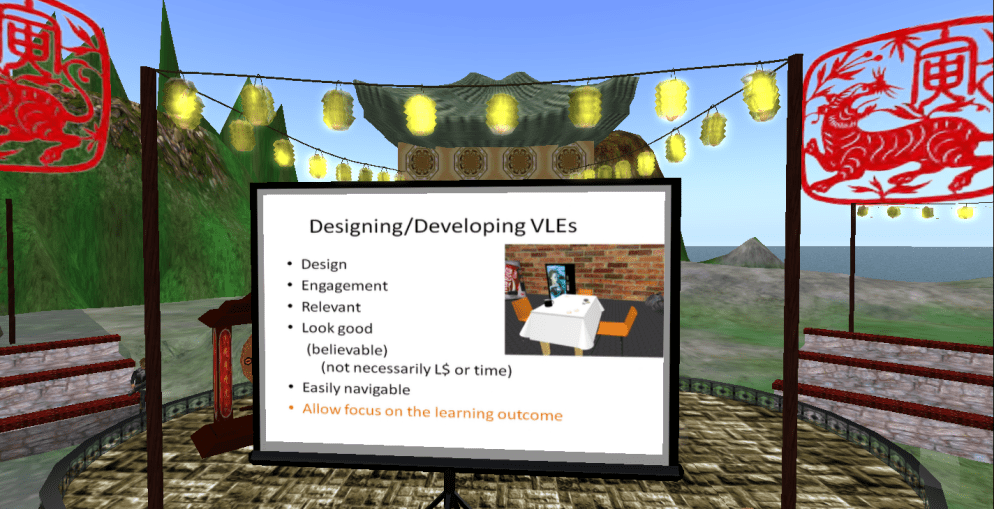After this, the next session I wanted to attend was on “Creating a Positive First Hour Experience“, which of course is highly relevant, but as the presenter decided to do his session in text only, I decided to skip it. SL simply doesn’t appeal to me without voice … I might as well read a regular text in my own pace. Instead I decided to get some sleep before attending the last session (at 5 am in Denmark), which was by another friend of mine, Tab Scott who has been actively teaching and researching in SL since 2005.