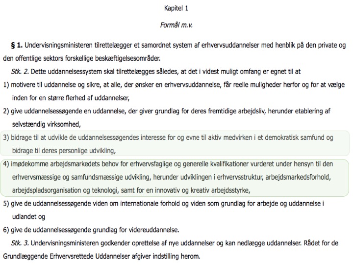 Som det fremgår af udsnit fra Erhvervsuddannelsesloven herunder, er formålet med EUD bla. at imødekomme arbejdsmarkedets behov (§1, stk. 2, pkt. 4), og som sådan giver det god mening at søge information og viden om, hvilke digitale kompetencer, der efterspørges.