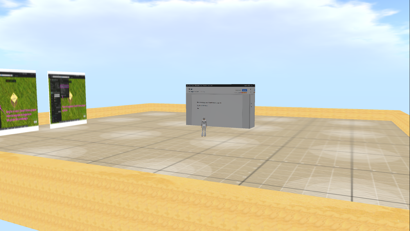 The team’s lead designer, JoeChipmunk had some interesting reflections on some of the challenges you face, when trying to replicate our past as the team had tried to do in the sandbox. The point of departure for the sandbox design had been a respectful remediation strategy, but with the target group in mind, the team had also decided to add “mystical” elements such as the rainbow, animated animals, air floating ships, and giant posters. JoeChipmunk also explained, how he had been forced to consider the authenticity of the different objects (e.g. did this kind of plant/animal exist at that point in time/in that part of the world), and in this sense, building in SL had sharpened his perception of history, validity of sources etc.