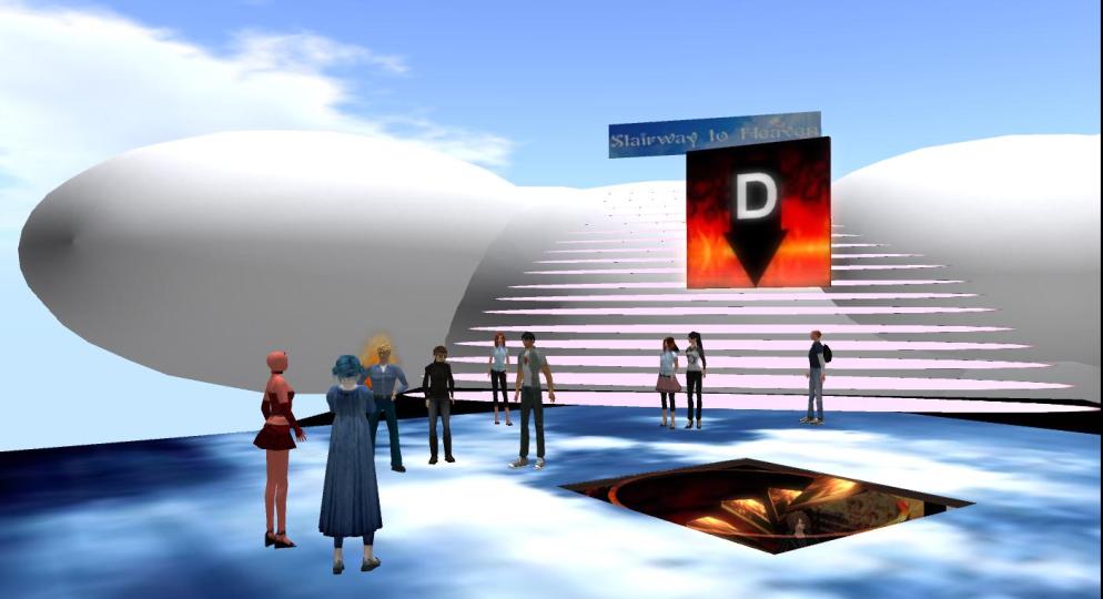 This is the third post of five describing the work of the students from the PD class, I’ve been running since December 5th, 2011 with students from the Master’s Program on ICT & Learning (MIL) at Aalborg University where the students have to do presentations in-world. Background information on the course/the presentation task can be found in this first post, and here’s the link to the second post. On Thursday, January 19th Team C had to present their analysis of SL as teaching and learning environment.