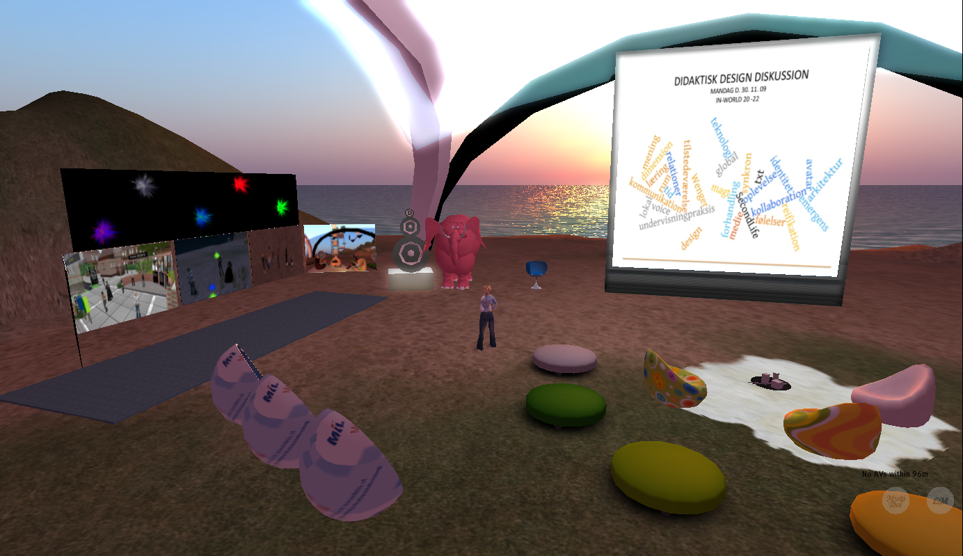This is the fourth post of five describing the work of the students from the PD class, I’ve been running since December 5th, 2011 with students from the Master’s Program on ICT & Learning (MIL) at Aalborg University where the students have to do presentations in-world. Background information on the course/the presentation task can be found in this first post, and here’s the link to the second post, and the third post.  On Monday, January 23rd Team D had to present their analysis of SL as teaching and learning environment.