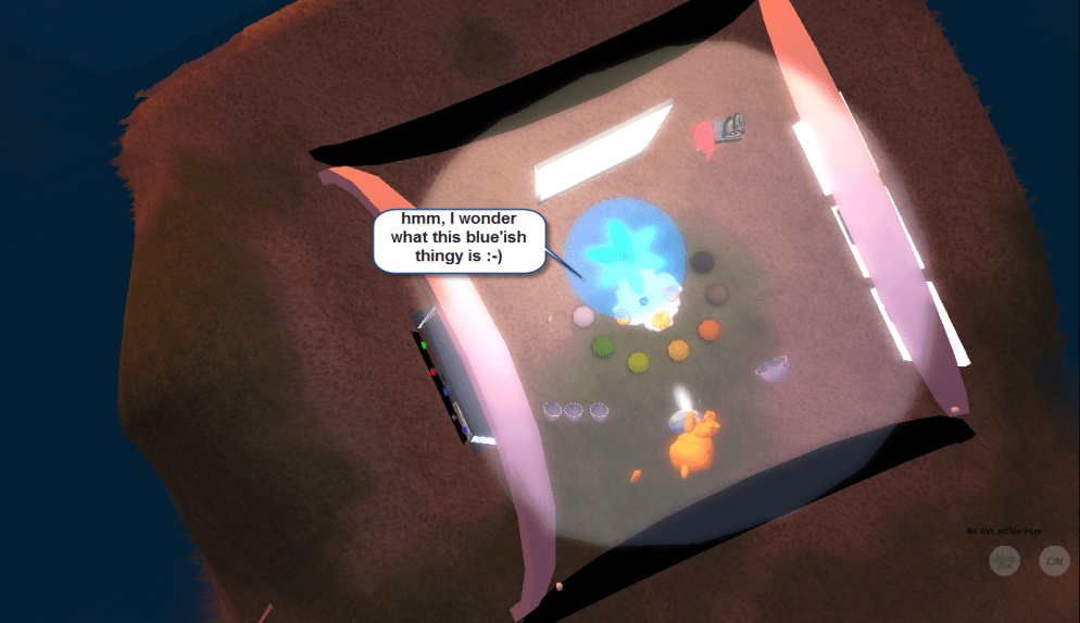 After we were welcomed in the team’s sandbox, Team C’s mouritzen gave us a brief overview their investigation question and of some influential games/systems in the field of 2D/3D VR/VE.