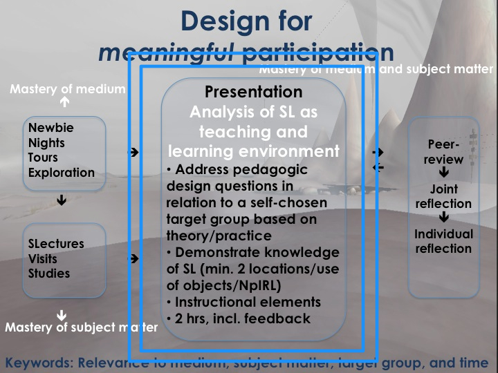 As seen in this abstract, we aim to analyse and compare findings from two different studies conducted at the Master’s programme on ICT and Learning (MIL) which is situated at AAU. Study I has been conducted by Lone, where she has focused on MIL students’ use of a conventional 2D virtual learning environment, whereas study II is based on my PhD-research with MIL students in Second Life (SL).