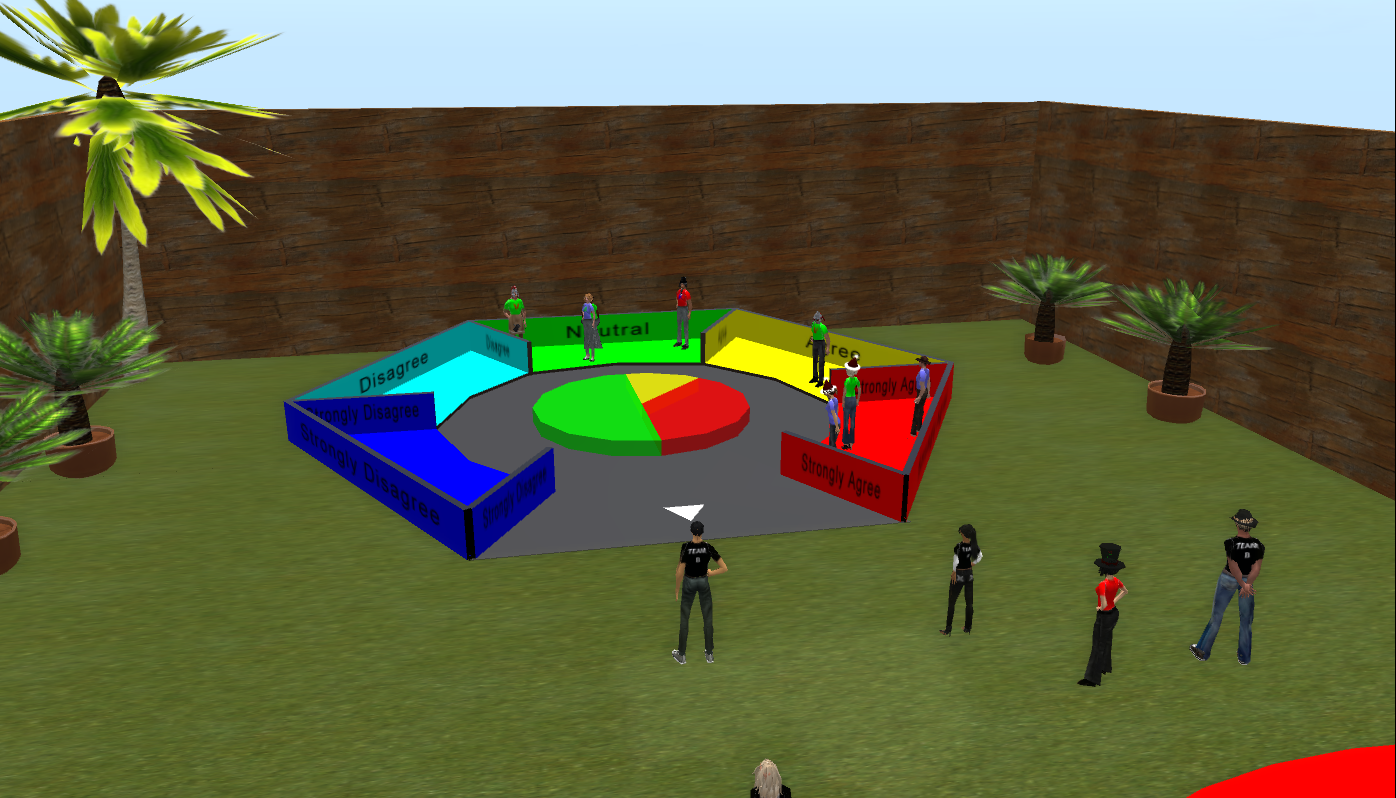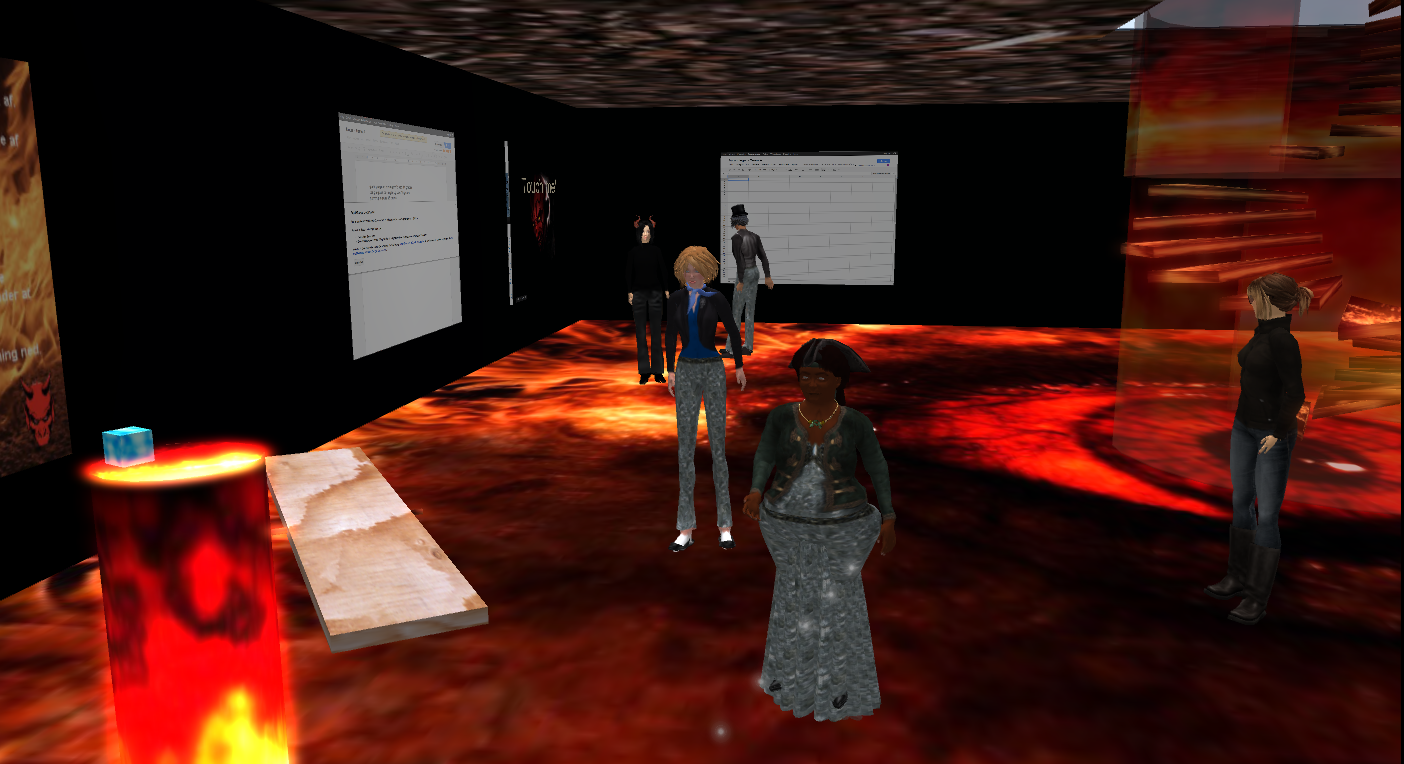 Despite all the technical problems, there was no doubt that Team C had prepared a very good and interesting presentation. Needless to say, the technical problems completely overshadowed their efforts for those of us experiencing problems, and it was so sad and unfortunate that the team members also had problems and didn’t get to present their hard work in the way they had envisioned. All of us felt terrible for the team, and many of Team C’s classmates sent them supporting comments in our regular 2D (and very stable!) platform afterwards. Having been in SL for almost 5 years now, I have come to expect occasional technical break-downs, but I have to say that this was my worst SL experience ever. Throughout the course, I monitor the students’ activities closely, and I know just how much work they put into these presentations – it’s simply amazing! So to have such a terrible outcome was really, really sad.