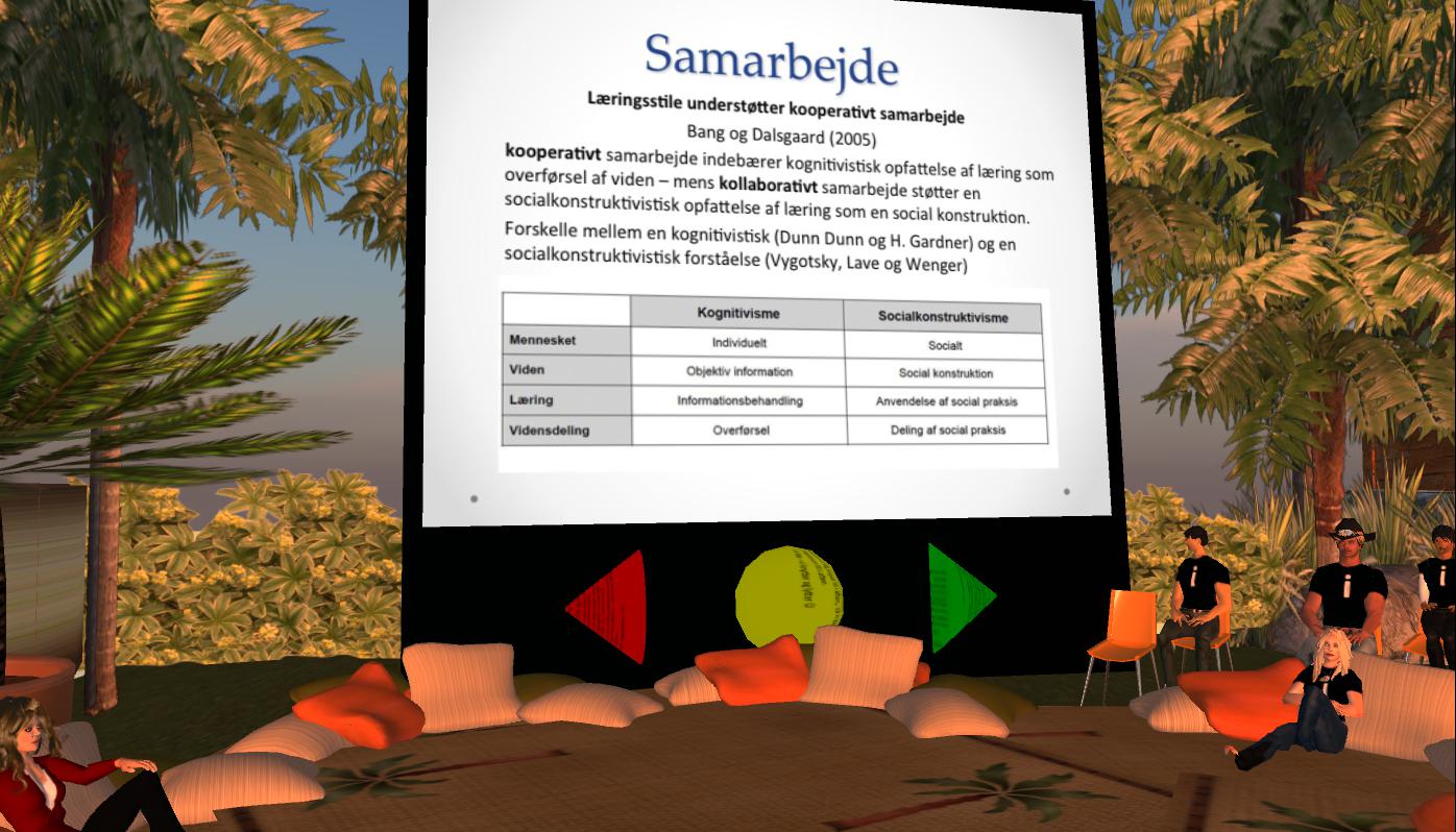 This is the second post of five describing the  work of the students from the PD class, I’ve been running since December 5th, 2011 with students from the Master’s Program on ICT & Learning (MIL) at Aalborg University where the students have to do presentations in-world. Background information on the course/the presentation task can be found in this first post. On Tuesday, January 17th Team B had to present their analysis of SL as teaching and learning environment.
