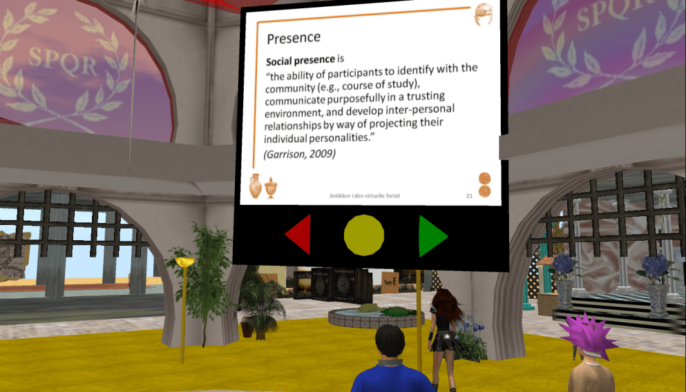 This is the third post of five describing the work of the students from the PD class, I’ve been running since December 5th, 2011 with students from the Master’s Program on ICT & Learning (MIL) at Aalborg University where the students have to do presentations in-world. Background information on the course/the presentation task can be found in this first post, and here’s the link to the second post. On Thursday, January 19th Team C had to present their analysis of SL as teaching and learning environment.