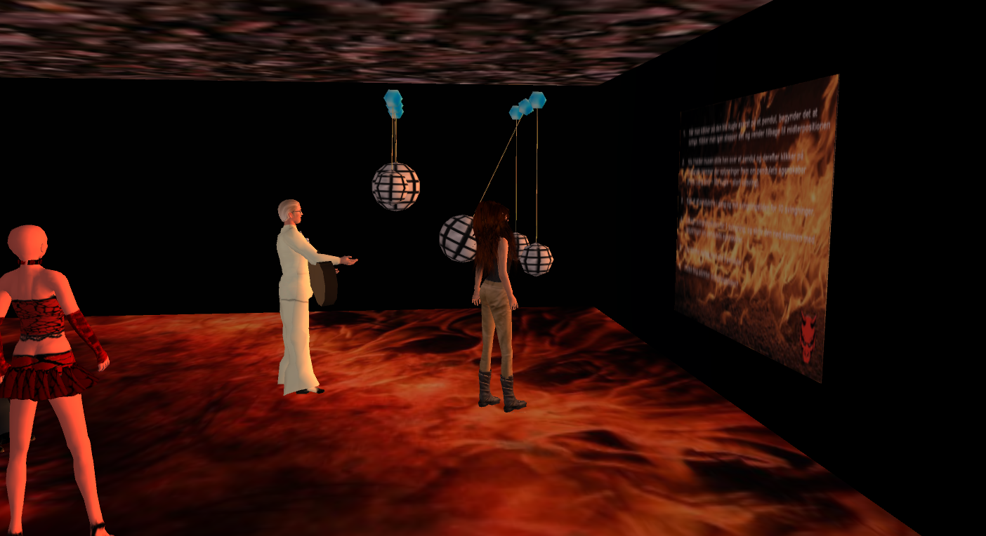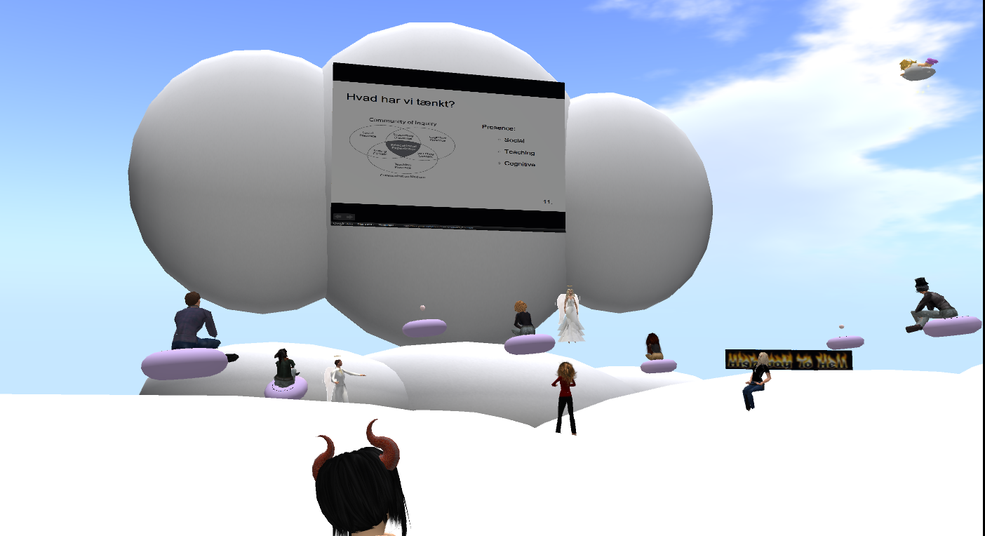 Since December 5th, 2011 I’ve been running a PD class with students from the Master’s Program on ICT & Learning (MIL) at Aalborg University, and in order to pass the course, the students were asked to do in-world team presentations on the teaching and learning potential of SL. On Wednesday January 25th, Team E had to do their presentation, and this is the final post describing the students’ presentations. Background information on the course/the presentation task can be found in the post describing the first presentation, and here are links to the second, third, and fourth presentations.