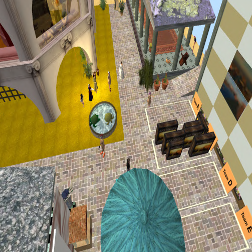 ROMA is a no-speak island, and so several of the participants did not realize that they had audio/speak problems until they came back to Team C’s sandbox. At this point, Team C wrapped up the first part of their session, where we, the audience, had acted as High School students, and now they wanted to focus on their theoretical considerations and design choices in relation to their investigation question and overall theme. One team with audio problems solved it by transmitting one member’s sound via Google Plus, others tried Skype, and from the presenting team only sjostakovitch and JoeChipmunk had voice, and so this final part of the session was a very frustrating and disruptive experience. At this point, I want to acknowledge the resilience of Team C, I was very impressed with their willingness to try to continue and finish their session despite all the technical problems!
